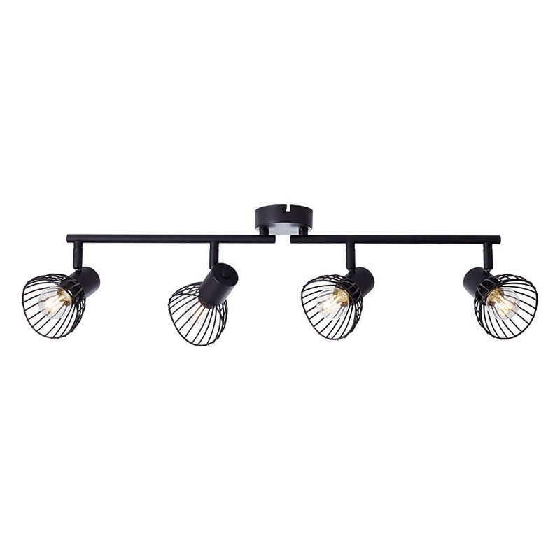 Estructura metal color negro. Rosca E-14. Potencia máx. 40 W. (Lámparas no incluidas). Conexión directa a la red.