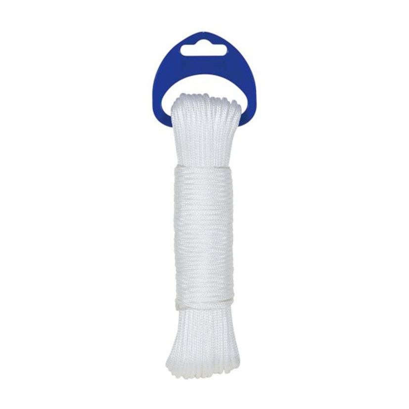 Bobina. Color blanco. 100% polipropileno alta tenacidad con protección UV. Trenzado con alma. Aplicaciones: Riel de cortinas, tenderos, camping, guía hilos.