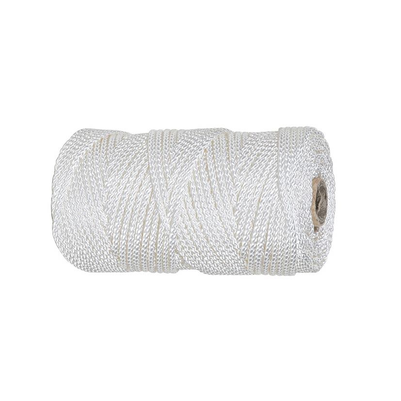 Bobina. Color blanco. Poliamida de alta tenacidad protección solar. Fibra suave y flexible, con gran resistencia a la tracción y al rozamiento, excelente anudabilidad. Aplicaciones: Albañilería, jardinería, horticultura, bricolaje manualidades, paquetería, náutica, deporte, toldos persianas, confección.