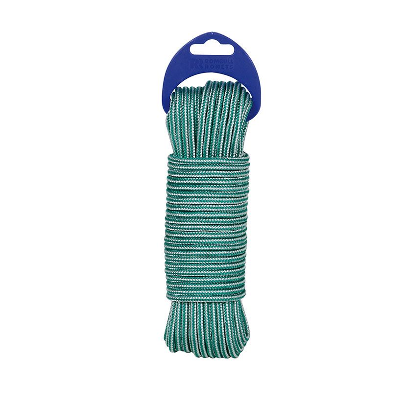 Bobina. Camisa polipropileno alta tenacidad, protección solar, interior material textil, trenzado con alma. Cordón ligero y suave, posee flotabilidad no absorbe agua, buena anudabililidad. Aplicaciones: Tendederos de ropa, camping, cercados, efectos navales, persianas y bricolaje.
