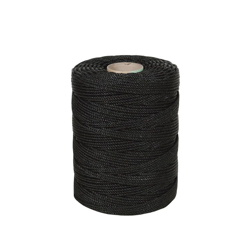 Bobina. color negro. Monofilamentos de polietileno torcidos a 3 cabos. Cuerda flexible, no absorbe agua, de reducida elasticidad, flota en el agua, desliza con facilidad sobre cualquier superficie. Aplicaciones: Guía para pasar cables telefónicos y eléctricos.
