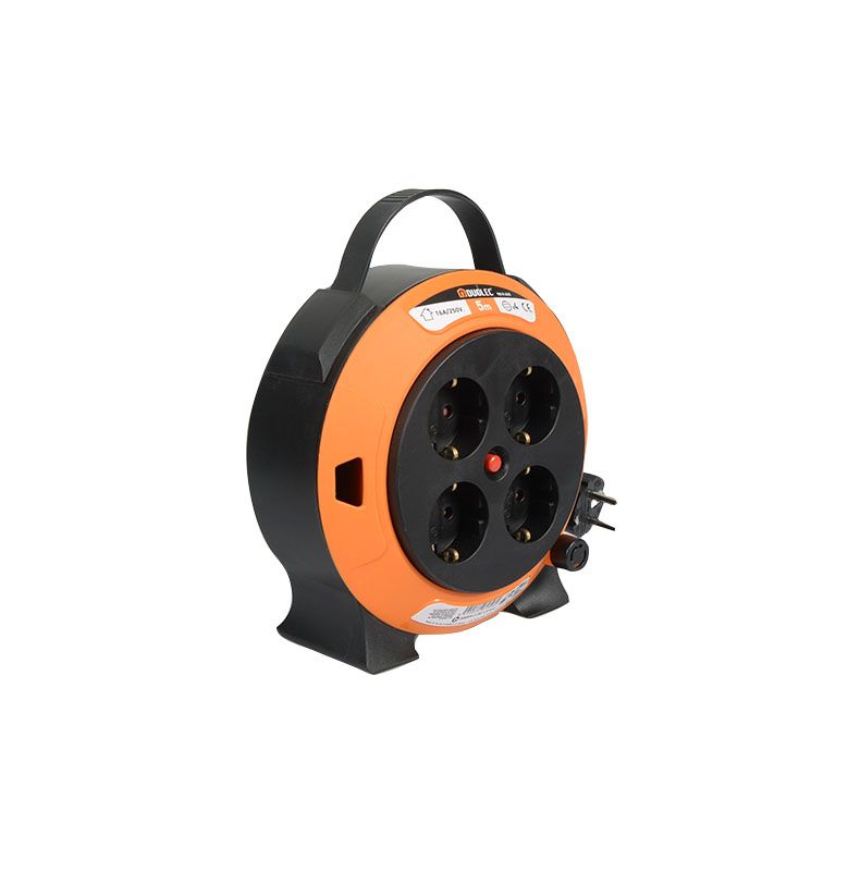 4 tomas T/T lateral. Cable HO5VV-FF 3G1.5. Interruptor de protección térmica. Potencia máxima admisible cable desenrollado 1.000 W. Tensión 16A/250V.