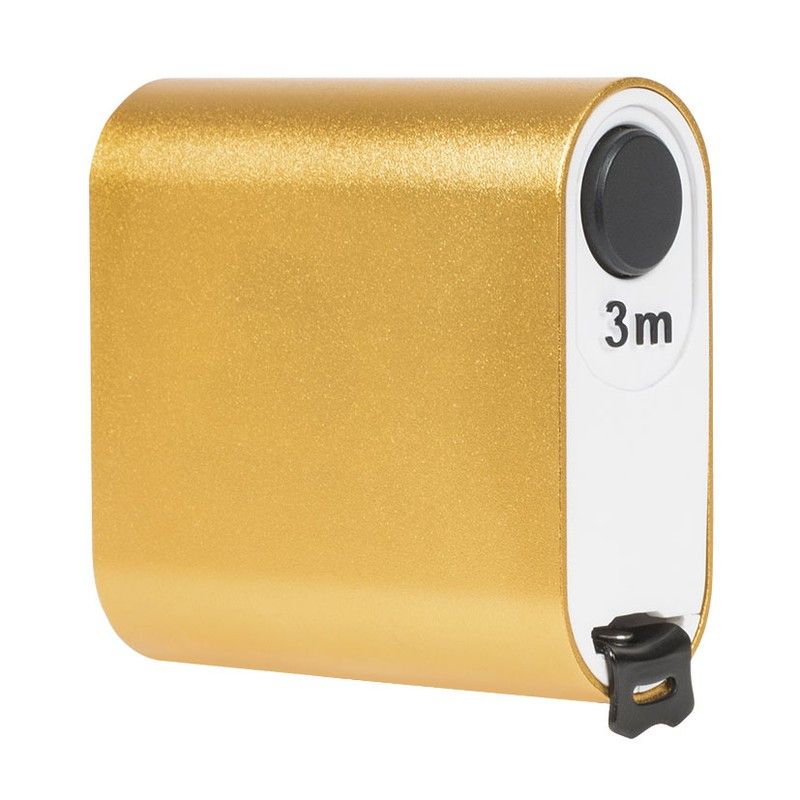 Carcasa aluminio. Cinta blanca de acero con revestimiento antireflex. Gancho metálico y cinta con sistema de bloqueo automático Auto Lock. Con correa de mano. Homologado CE, clase de Precisión II. Caja display 12 unidades. Colores surtidos: rojo, pla