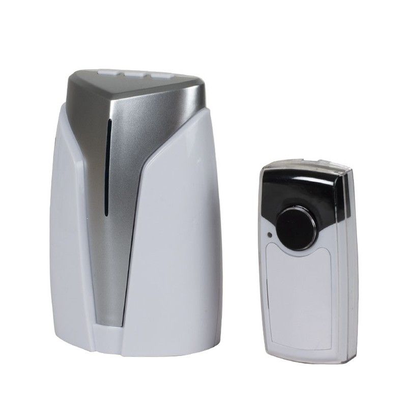 4 ajustes de volumen. (desde silencio hasta 85 dB). 3 modos de funcionamiento: sólo melodía o sólo iluminación o melodía con iluminación. El timbre funciona con 3 pilas AA (no incluidas), y el transmisor 1 pila 12V / A23 (incluida).